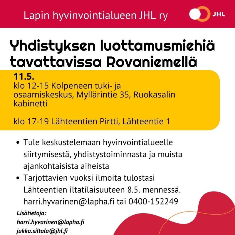 LAPIN HYVINVOINTIALUEEN JHL RY KEVÄTKIERTUE ROVANIEMELLÄ 11.5.2023