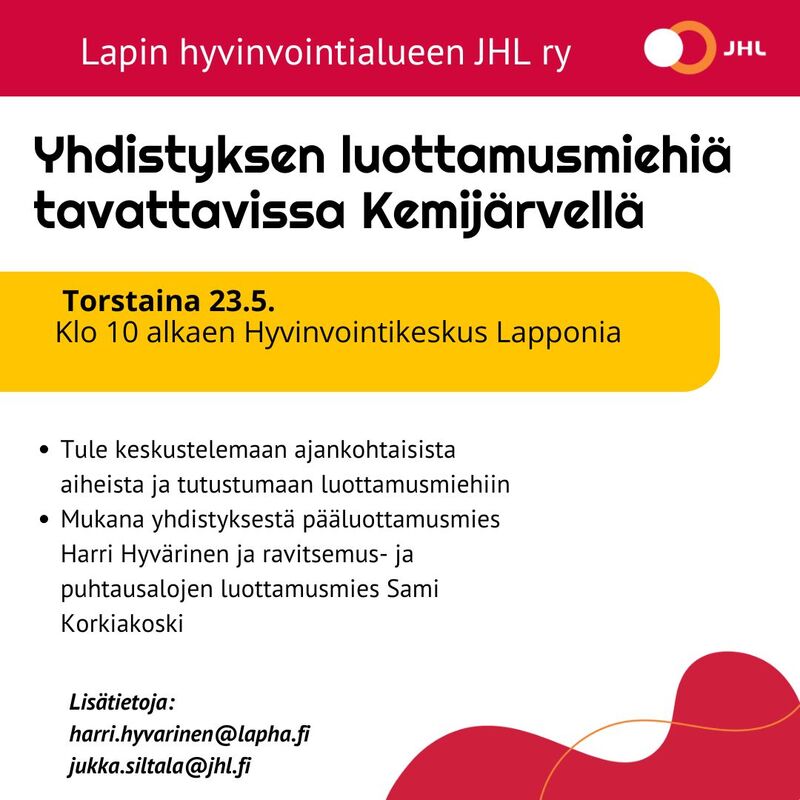 YHDISTYKSEN LUOTTAMUSMIEHIÄ TAVATTAVISSA KEMIJÄRVELLÄ 23.5.2024